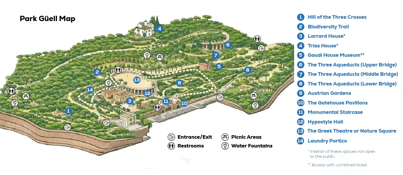 - Ticket to Park Güell - Official ticket price: 18€; The remaining amount corresponds to added services, audioguides and booking services